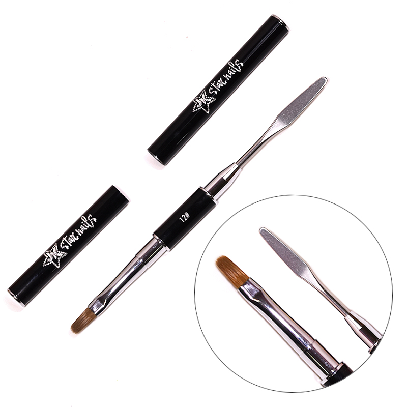 Τέλειο πινέλο με φυσική τρίχα ,ελαφρώς οβάλ ,για χτίσιμο με gel και acrygel .Συνδυάζει και σπάτουλα για την εύκολη εξαγωγή του acrygel από το σωληνάριο και την τοποθέτησή του στο νύχι.