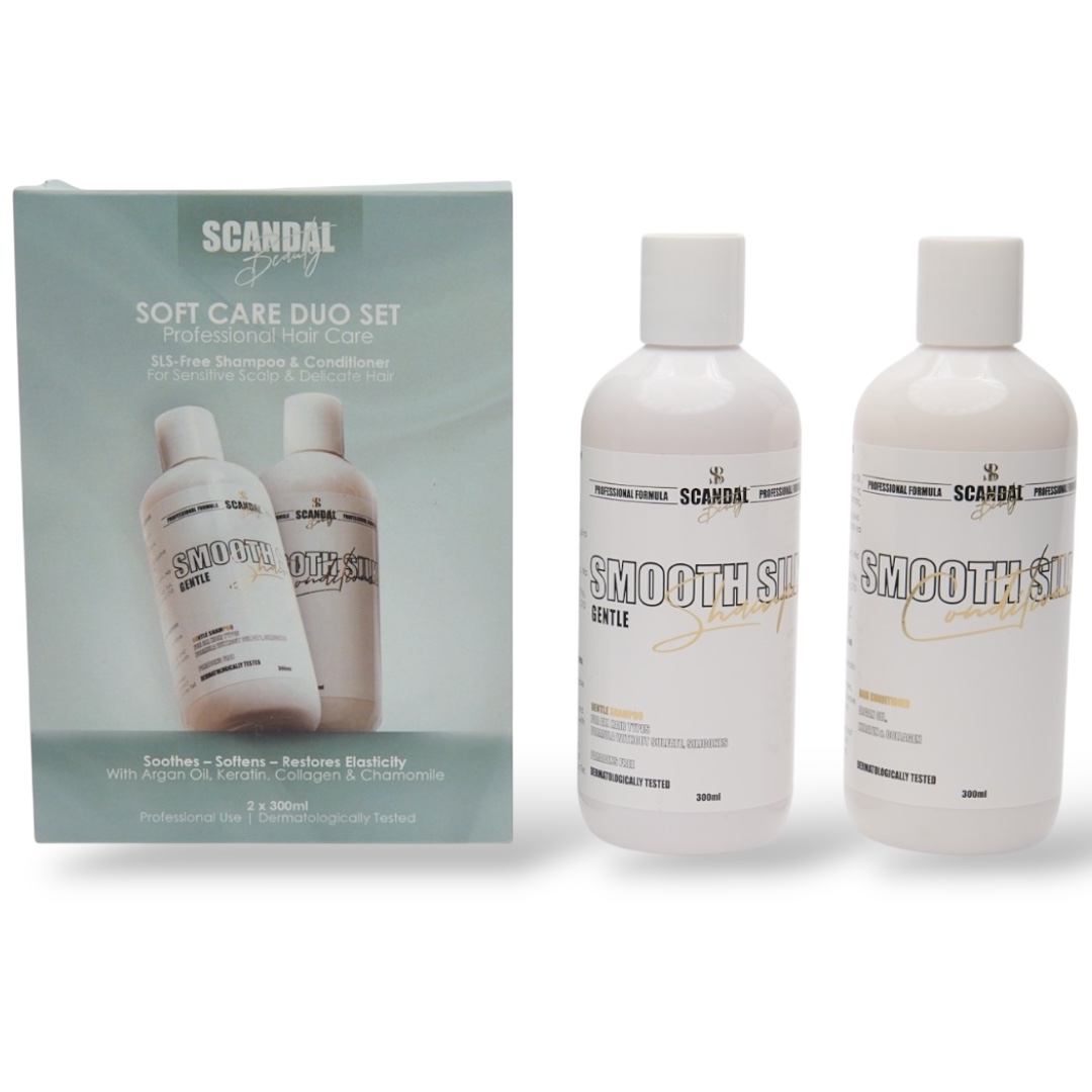 Αναβάθμισε την καθημερινή σου ρουτίνα περιποίησης με το επαγγελματικό σετ “SmoothSilk”, σχεδιασμένο για να προσφέρει ήπιο καθαρισμό και εντατική θρέψη χωρίς να βαραίνει τα μαλλιά. Ιδανικό για όλους τους τύπους μαλλιών και ειδικά για ευαίσθητο τριχωτό, ξηρά ή ταλαιπωρημένα μαλλιά, ή για όσους επιλέγουν προϊόντα χωρίς θειικά άλατα (SLS/SLES).